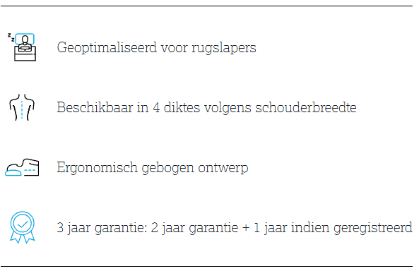 Geoptimaliseerd voor rugslapers: Dit kussen is bij uitstek geschikt voor wie voornamelijk op de rug slaapt, maar biedt ook ondersteuning bij zijligging.