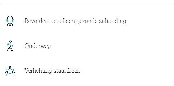 Gebruik: Ondersteuning tijdens het zitten; ook geschikt voor onderweg