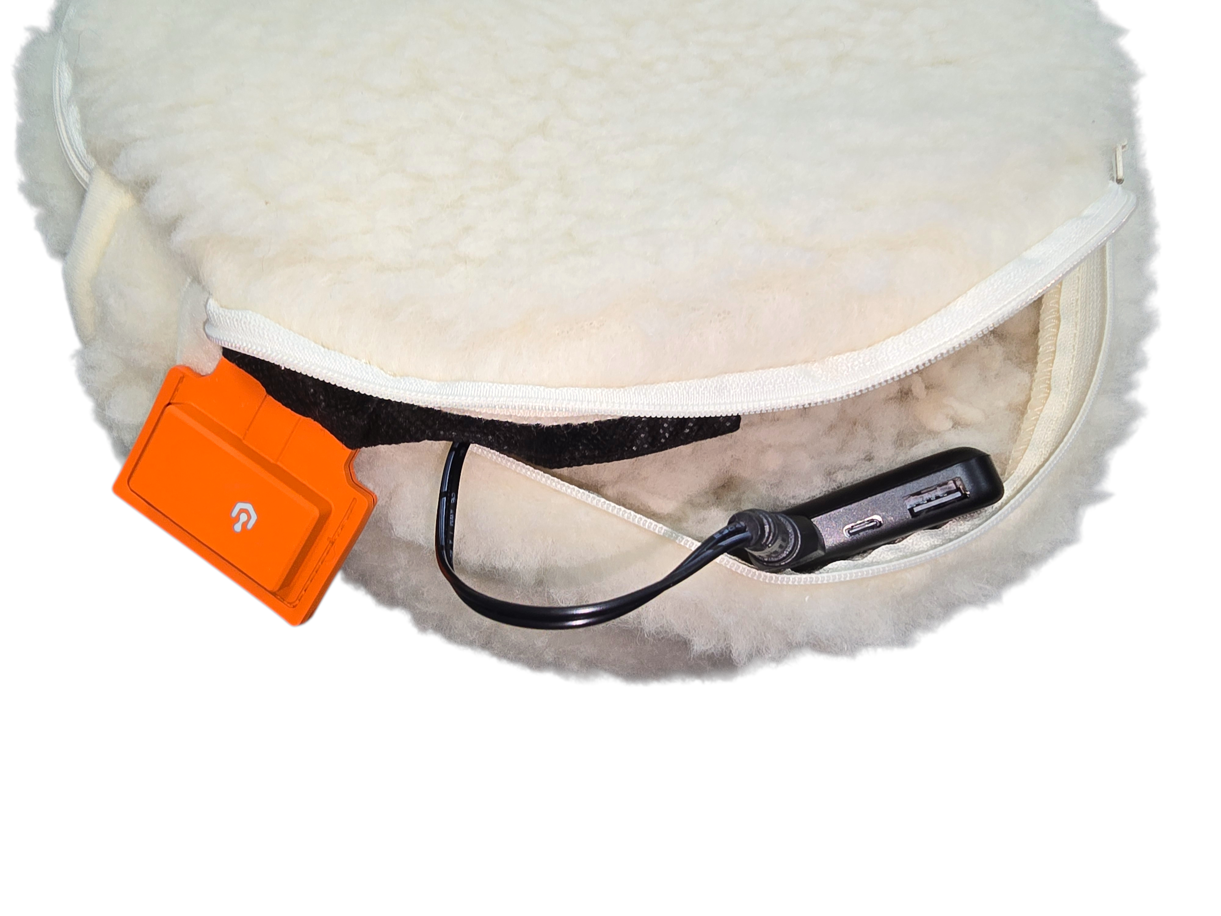 Woolie Zitkussen Rond - Wollen vachtkussen met infrarood verwarming!